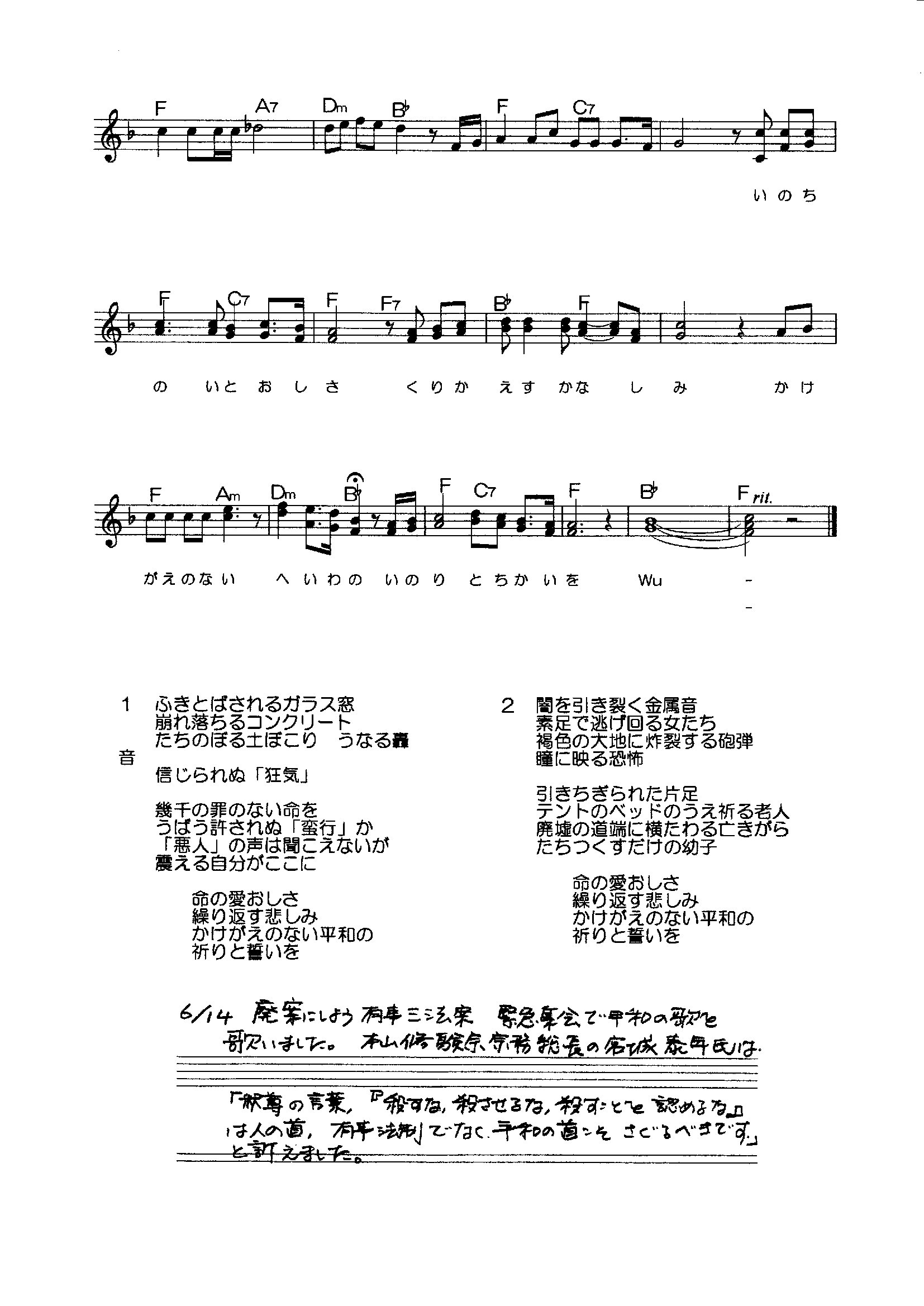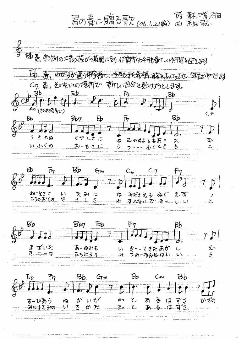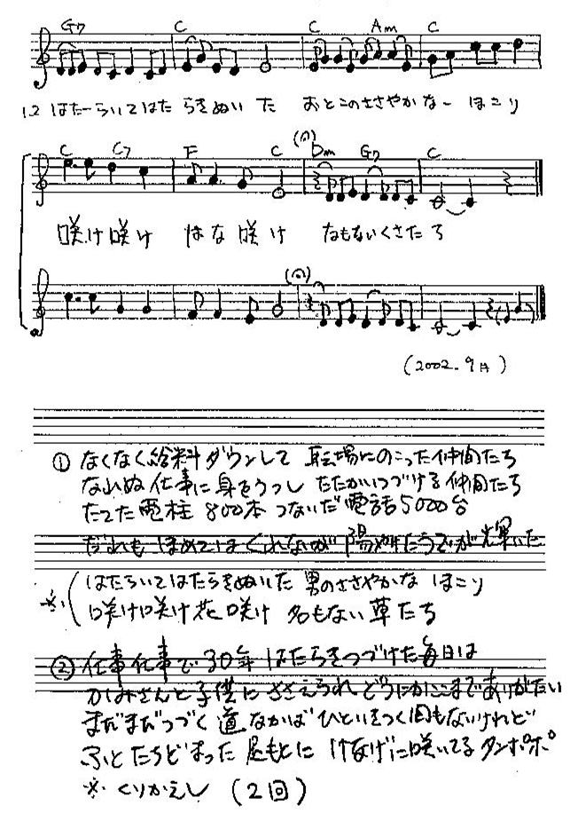 「こんな歌できたよ」と話すと、「僕の気持ちの通りの歌や。けど、みんなの前で歌わんといて。