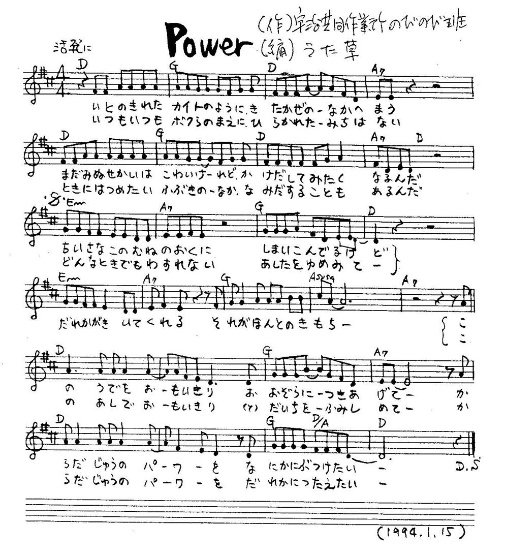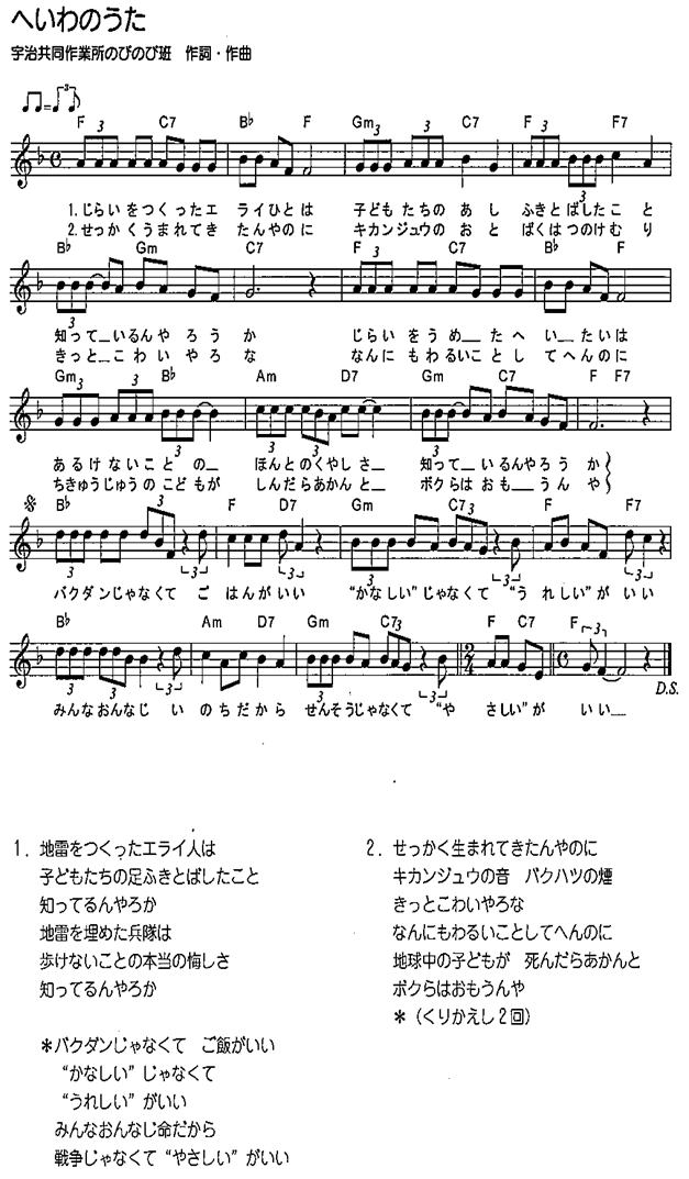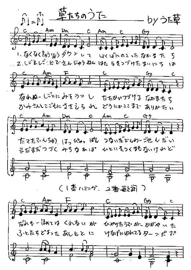 (詞・曲/宇治作業所のびのび班 編/うた草)