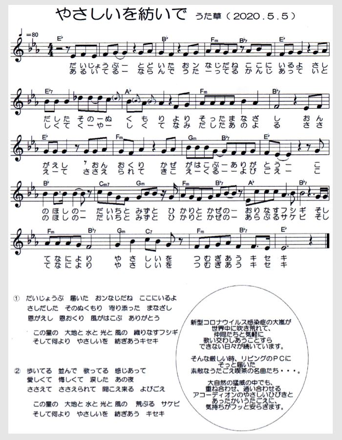 「うた草セカンドコンサート」のラストの曲として作ったものです。