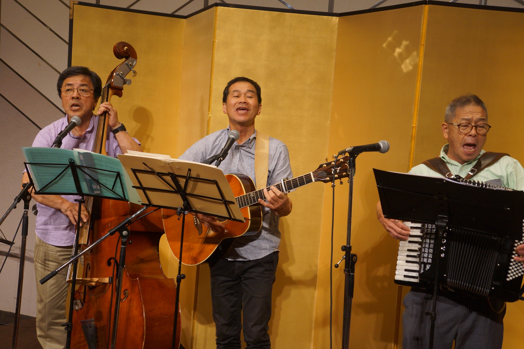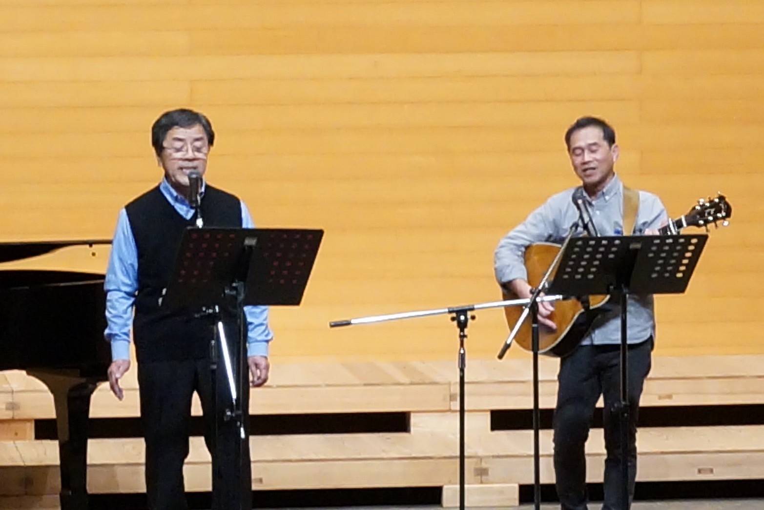 今回は、村田、三觜に加えて、同じ京都ひまわり合唱団32期研究生の仲間である杉山君にもギター伴奏を手伝ってもらいました。