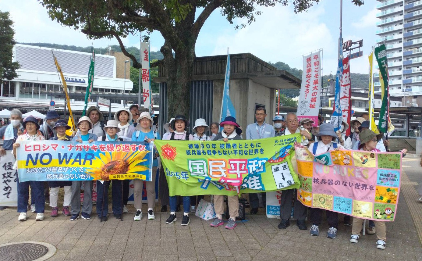 原水禁平和行進で、朝のJR大津駅です。びわ湖の風合唱団の伴奏をして、山科に戻り、山科区内のパレードに参加。